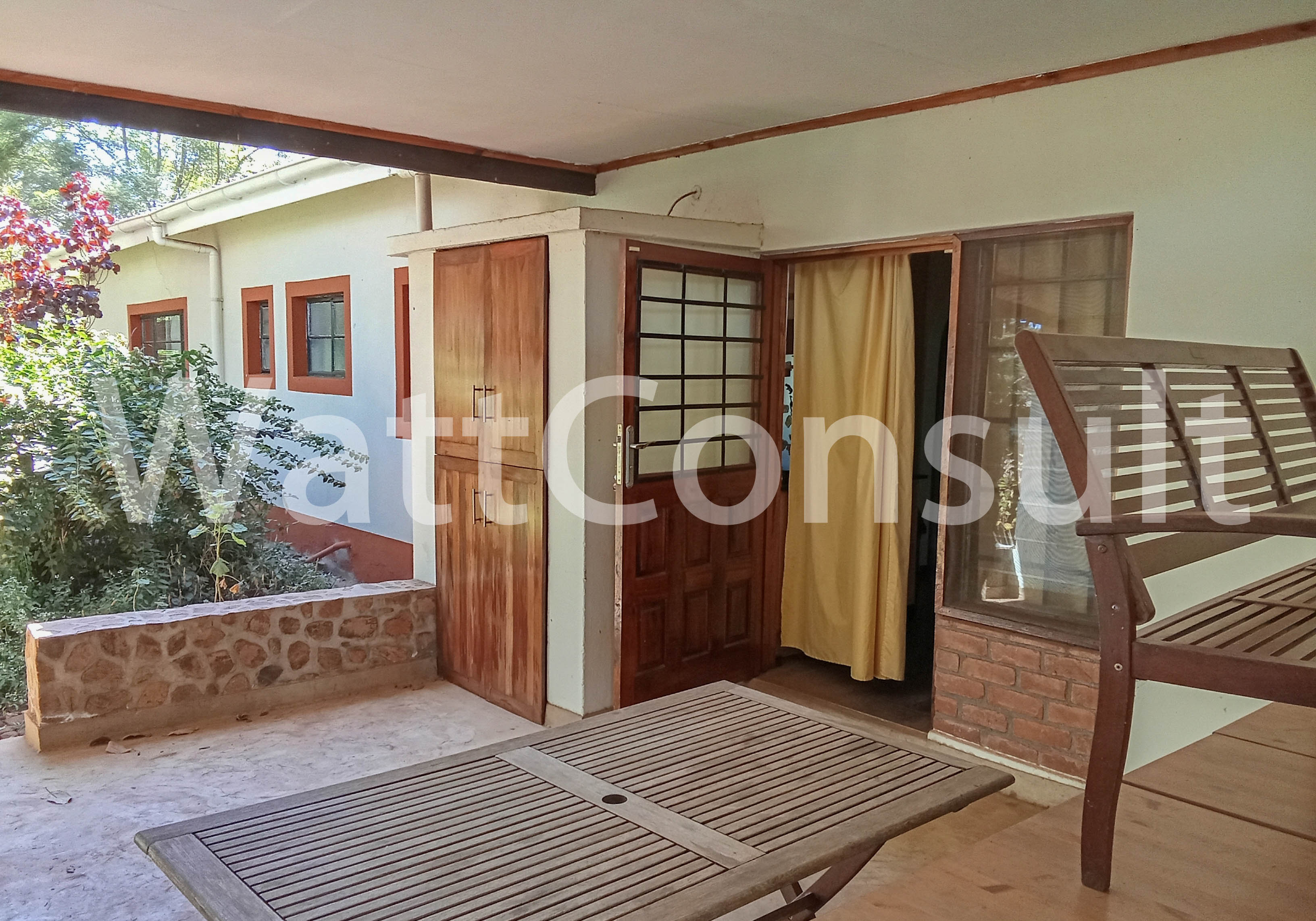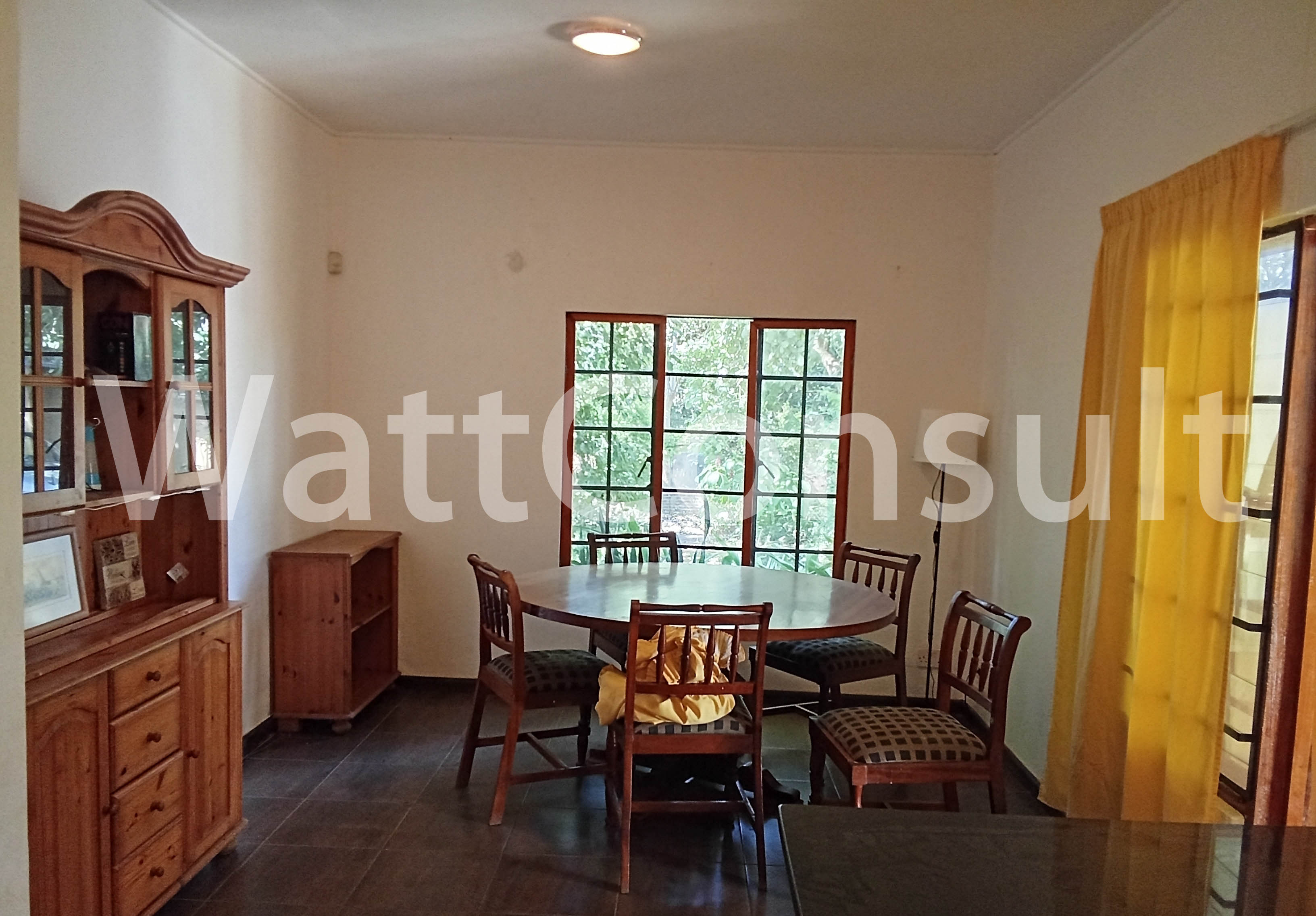 | Description: 3-bedroom stand-alone house – 3 Bedroom with 2 master ensuite, Separate dinning and lounge, fitted kitchen with pantry and laundry, staff quarters, Prewired for power backup. Large, landscaped garden with exotic trees. Electric fence mounted on brick wall perimeter, also suitable for office use. Available now | |||