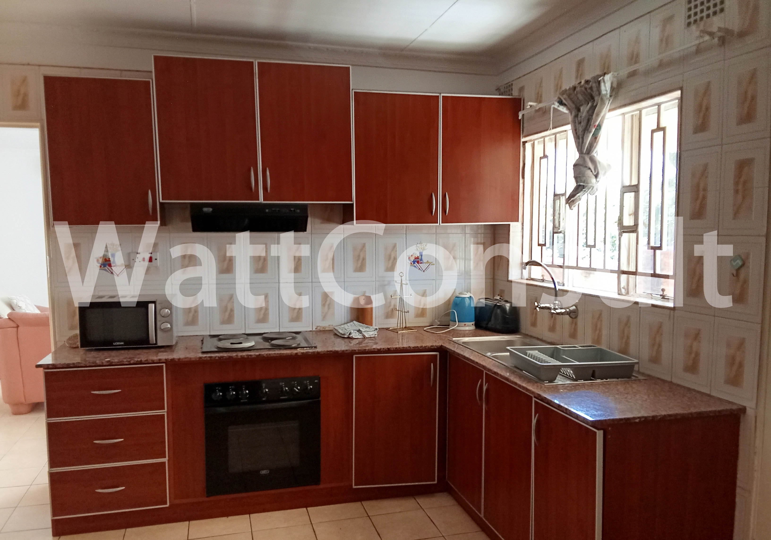 | Description: 2-bedroom townhouse – master ensuite, open plan sitting and dining area, shared bathroom, fitted kitchen, pantry, established garden, outside porch, carport, comes with water tank and inverter, well secured with electric fence. 1 available, Junior Villas | |||